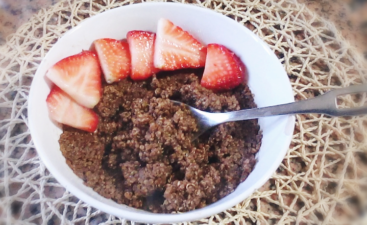 Quinoa para o pequeno-almoço? Sim! Quinoa pode ser cozinhada com vários fins, desde jantar a pequeno-almoço e mesmo assim fica uma delícia. Com chocolate e morangos...hum...ainda fica melhor.